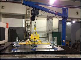 Vacuum lift description Model BLA500 Maximum load Horizontal handling 500kg Overall dimensions 2000mmx800mmx850mm Power 415V,50HZ, 3 Phase Model of Control Suction and release control by manual push-pull valve Suction release time Less than 2s Net weight 95kg Pressure maintaining After Power Failure the holding time when suction plate by vacuum system 30min. Safety alarm When the pressure is lower than the set alarm pressure 60 , Sound and light alarm automatic alarm.